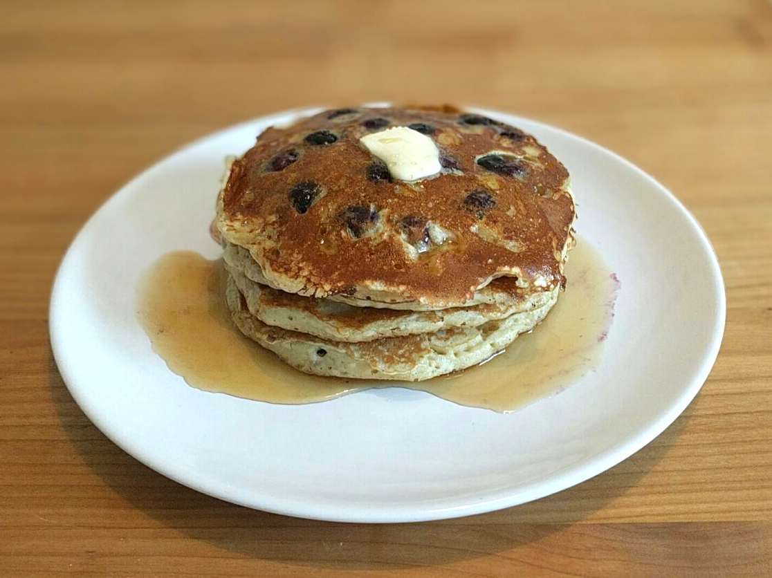 Blueberry buttermilk pancakes are a great classic with maple syrup and next time I'll make them with chocolate chips!